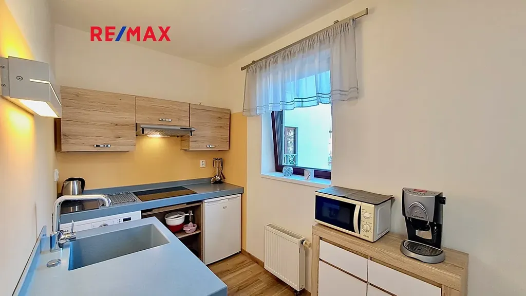 Na velmi pěkném a klidném místě u Kavčích hor nabízíme k pronájmu byt s dispozicí 1+kk s prostorným balkonem. Byt se nachází v prvním patře pětipodlažního zatepleného domu s výtahem a je orientován směrem na východ. Nabízí se kompletně vybavený, jak je vidět na fotografiích. Kuchyňská linka disponuje varnou deskou, malou lednicí s mrazákem, součástí je také pračka. V koupelně je sprchový kout, deska s umyvadlem a toaleta.