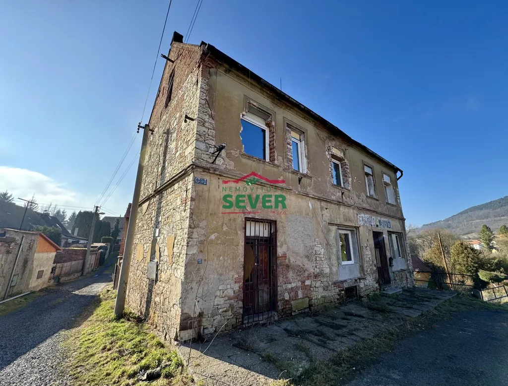 Nemovitosti SEVER vám zprostředkují koupi rodinného domu v obci Domoušice, části Solopysky v okrese Louny. Dům se zastavěnou plochou 200m2 a celkovou plochou včetně pozemku 340m2 je určený k celkové rekonstrukci. Nemovitost tvoří hlavní obytný dům a navazující stodola, které jsou stavebně propojené. Dispozice domu je v přízemí řešená vstupní halou, kuchyní, toaletou, koupelnou, třemi místnostmi a vstupu do místnosti v horním patře stodoly (spodní patro stodoly slouží jako úložný prostor). Patro domu se skládá ze zádveří, vstupu do prvního podkroví, chodby, čtyř místností a vstupu do vrchního podkroví, které je možné využít k vybudování dalších pokojů. Dům disponuje třemi vstupy - dva vstupy v přední části, třetí vstup z nádvoří (pouze do patra domu). V přední části domu jsou vyměněná okna za plastová. V domě je rozvedena elektřina (aktuálně odpojená), voda je k dispozici ze studny, odpad je svedený do jímky. Nemovitost nabízí zajímavý investiční potenciál. Díky dispozici a velikosti domu je objekt vhodný k rozdělení na více samostatných bytových jednotek (po případné úpravě a schválení stavebním úřadem). Součástí domu je nádvoří a pozemek před domem s celkovou výměrou 134m2. Občanskou vybavenost včetně obchodu, školy, školky, pošty, autobusové a vlakové zastávky nalezneme v 3km vzdálených Domoušicích. Lokalita nabízí výbornou dostupnost do měst Louny, Rakovník i Praha. V případě zájmu zajistíme optimální variantu financování na tuto nemovitost za zvýhodněných podmínek pro naše klienty.