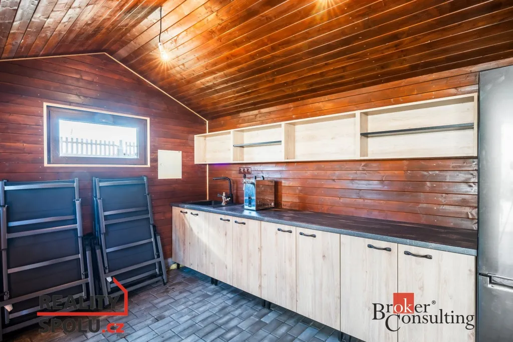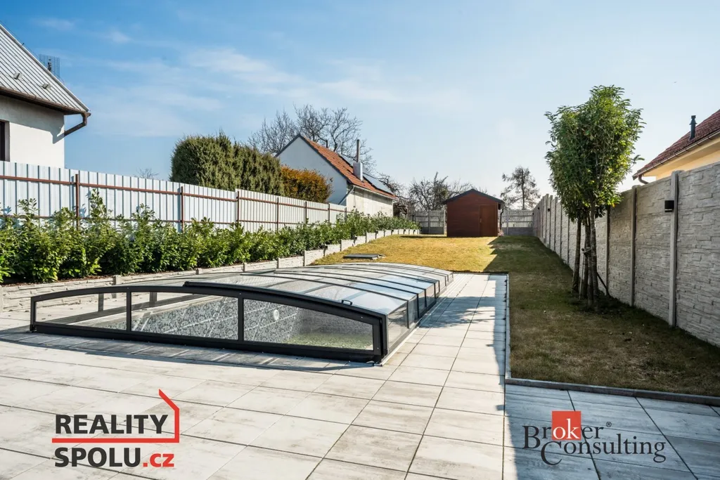 Součástí této nemovitosti je rozlehlá zahrada, která nabízí dostatek prostoru pro relaxaci i rodinné aktivity. Hlavní dominantou venkovního prostoru je velká terasa krytá pergolou s pohodlným zahradním posezením, ideální pro rodinné oslavy nebo chvíle s přáteli. Na pozemku najdete také velký krytý bazén o rozměrech 8 x 4 metry, který zajistí osvěžení v horkých letních dnech. Součástí je také zahradní domek, který je rozdělený na dvě části - přední slouží jako úložný prostor a zadní je vybavena kuchyňskou linkou.