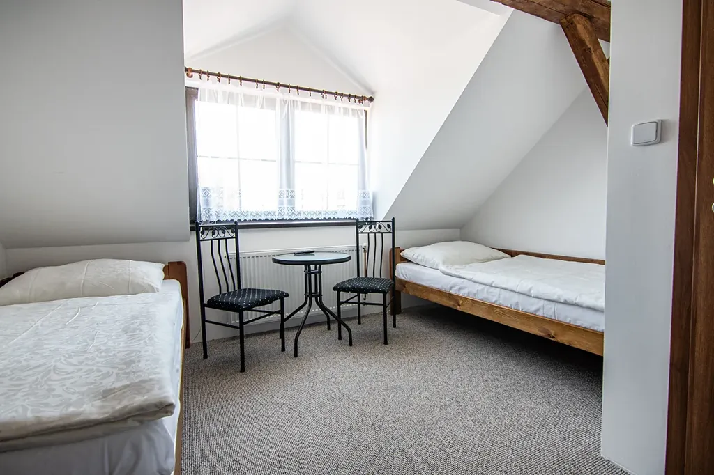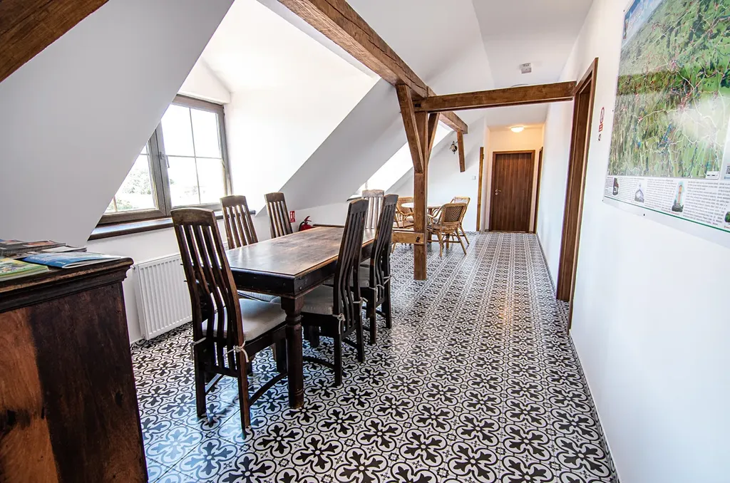 V hlavní budově se nachází ubytovací zařízení s obytnou plochou 198 m², které nabízí 7 komfortních pokojů s vlastním sociálním zařízením. Maximální kapacita ubytování je 16 osob.