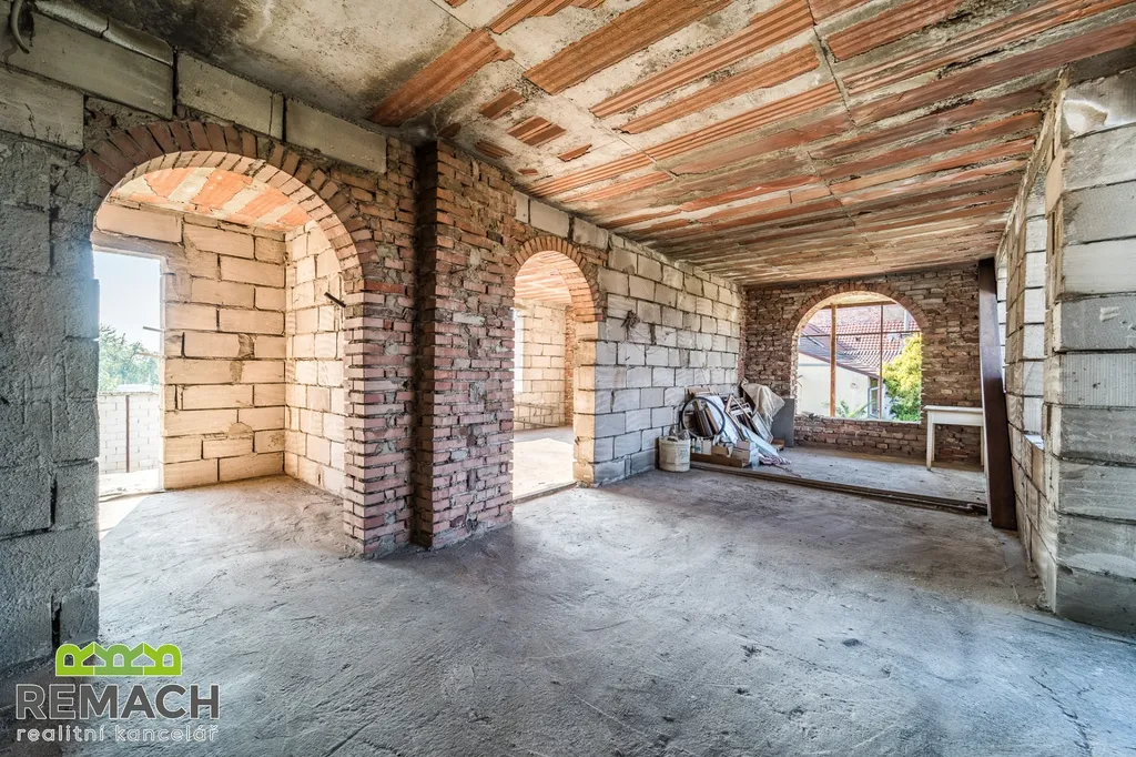 - A pokud chcete nemovitost pro vlastní bydlení, tak pravý rozestavěný cihlový dům byl navržen s dispozicí 6+1 s plochou pozemku 637 m², z toho zastavěnou plochou 191 m². V přízemí je naprojektován prostorný obývací pokoj napojený na kuchyni s jídelním koutem, zimní zahradou, pracovním koutem a pokojem, případně pracovnou, dále koupelnou s toaletou, vedle domu garáž pro dvě auta. V prvním patře jsou tři samostatné ložnice a koupelna, dále druhá zimní zahrada.