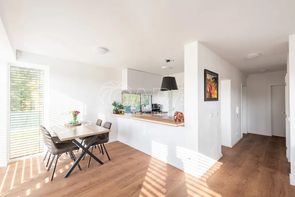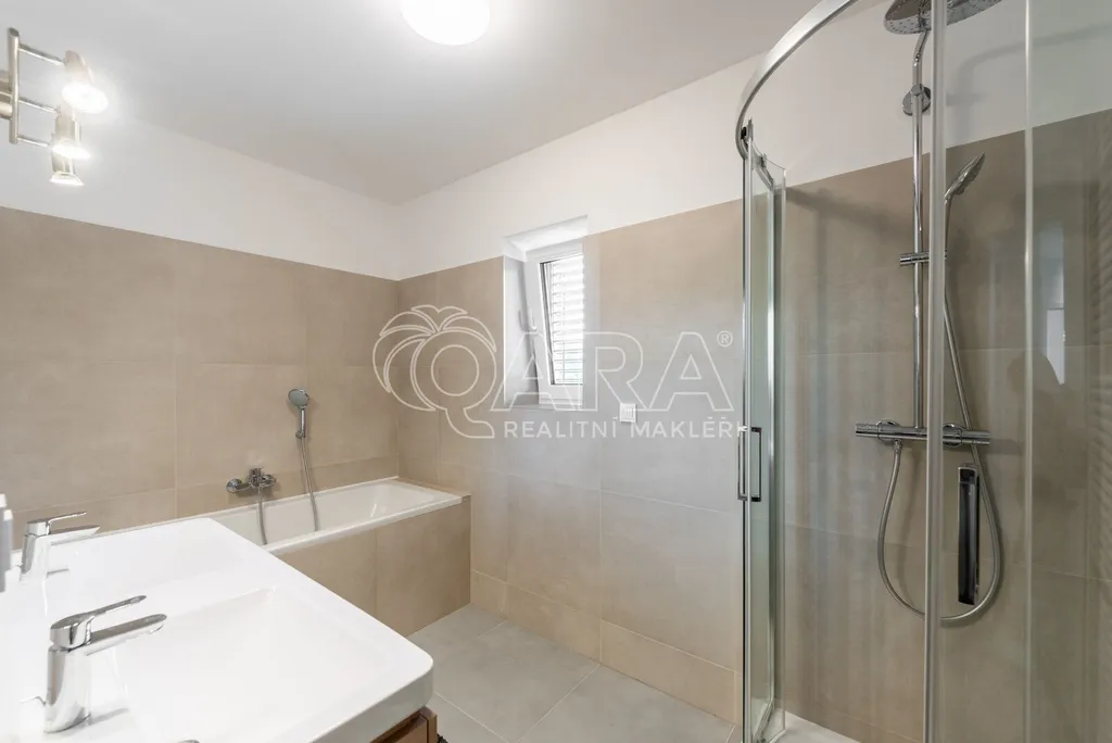 Nabízím k prodeji novostavbu rodinného domu 5+kk (polovinu dvojdomu) z roku 2022. Jedná se o kvalitní zateplenou zděnou stavbu s podlahovým vytápěním napojeným na tepelné čerpadlo (voda-vzduch). Dům je umístěn v klidné okrajové části obce. Na pozemku se nachází zastřešené parkovací stání s navazujícím zahradním domkem o velikosti 5,5 m2.