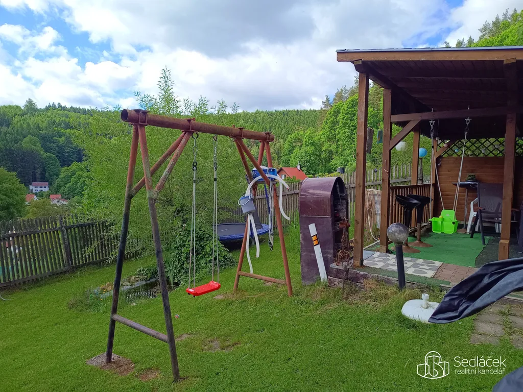 Pozemek je pečlivě udržovaný a nabízí dostatek prostoru pro relaxaci i zábavu pro celou rodinu.