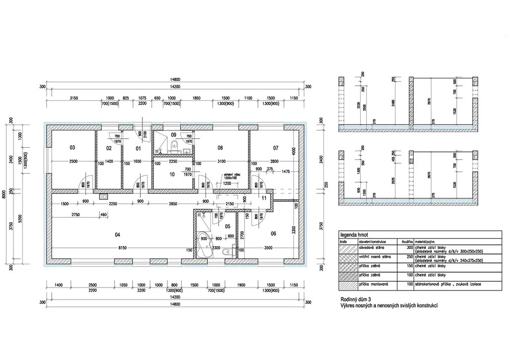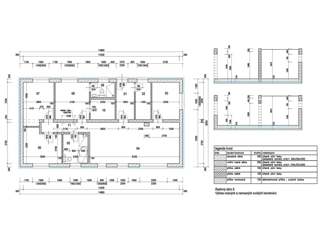 Dvě koupelny, šatna v hlavní ložnici, výklenky pro vestavěné skříně