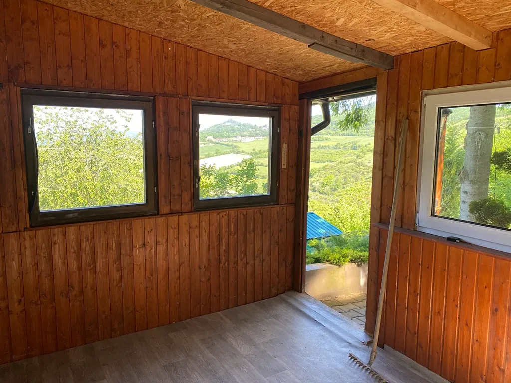 Chata na krásném místě s výhledem na České středohoří, prestižní a ceněná lokalita. Možno postavit dvojpodlažní dům, studie zpracována, k dispozici. Přípojka vody, el. 3x25A, odpad septik. Nyní na pozemku původní upravená a zateplená chata 41m2 vhodná i k trvalému bydlení - předsíň, kuchyň s kuch. linkou, pokoj, koupelna s WC a sprchou, ohřev vody bojler, vytápění krbová kamna, okna plastová. Na terase pergola a okrasné jezírko, výhled do kraje. Pozor - foto z května minulého roku. Chata a okolí takto bude za chvíli vypadat i letos.