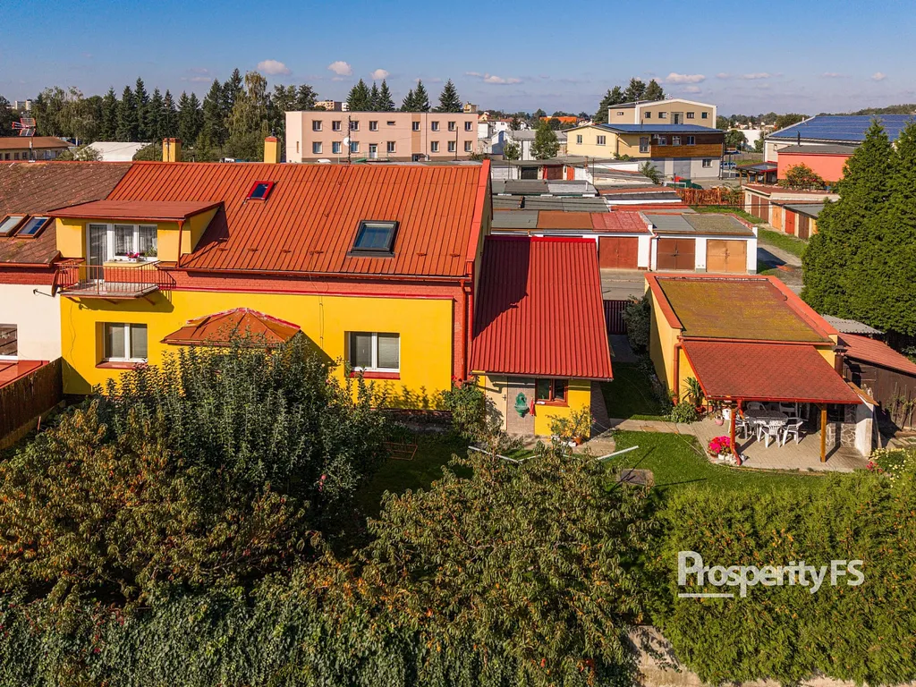 Pak vás jistě zaujme tento dvoupodlažní rodinný dvojdům se třemi bytovými jednotkami, dvěma garážemi a krásnou, velkou zahradou.