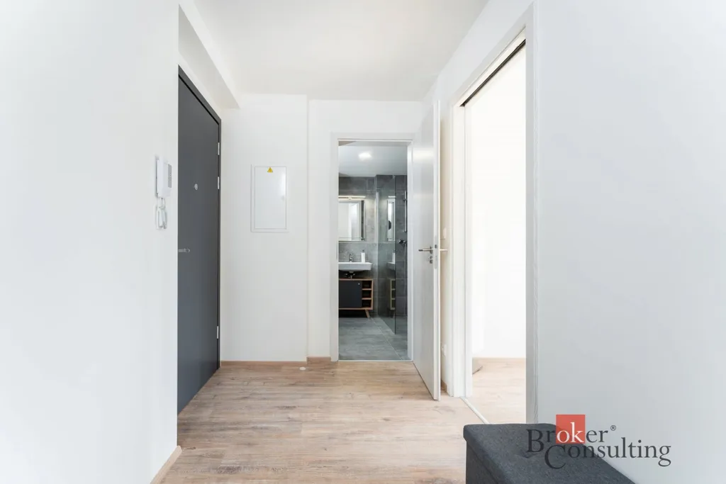 Bytová jednotka je situována v cihlovém, zatepleném domě a díky moderním technologiím je velmi úsporná na provoz. Vytápění i ohřev vody jsou řešeny centrálně. Jedná se o zcela nový byt, ve kterém dosud nikdo nebydlel. Byt je vybaven bezpečnostními vstupními dveřmi a venkovními roletami na dálkové ovládání. Orientace na jihozápad zajišťuje příjemné prosvětlení během dne. Součástí bytu je kuchyňská linka vybavená elektrickou troubou, sklokeramickou varnou deskou, myčkou, lednicí s mrazákem a mikrovlnnou troubou. Byt je dále zařízen rozkládací pohovkou, knihovnou, barovým pultem a konferenčním stolkem. Dispozici tvoří předsíň, obytný pokoj s kuchyňským koutem a koupelna se sprchovým koutem a toaletou. Praktickým benefitem je také sklep umístěný na patře domu.