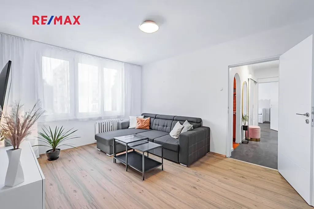 Byt se nachází ve třetím patře bytového domu bez výtahu, o jehož zabudování se právě jedná v rámci SVJ. Dům je zateplený a má nová plastová okna. Byt jako takový rovněž prošel rekonstrukcí, takže Vám dodá na pocitu útulného bydlení ve svěžím slunném domově. Jeho dispozice je velice praktická, jelikož obývací pokoj a ložnice jsou od sebe umístěny na opačných stranách bytu, což Vám zaručí klidné a pohodové spaní pro případ, že by někdo další dále aktivně využíval obývací pokoj. Byt je tak vhodný pro jednotlivce náročnějšího na prostory, dále pro pár, který hodlá započít novou životní kapitolu, nebo třeba i pro začínající rodinu o třech osobách.