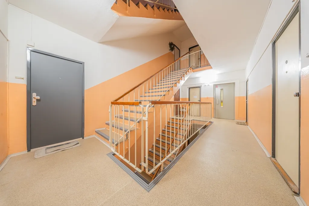 Nabízíme k prodeji bytovou jednotku o dispozici 1+1 a podlahové ploše 35 m², doplněnou balkonem o velikosti 2 m². Byt se nachází ve 4. patře domu ve velmi klidné části Kladna – Kročehlavy, v ulici Finská. K bytu náleží také praktický sklepní prostor o výměře 2 m², který je umístěn přímo na patře. Jihozápadní orientace zajišťuje dostatek denního světla.