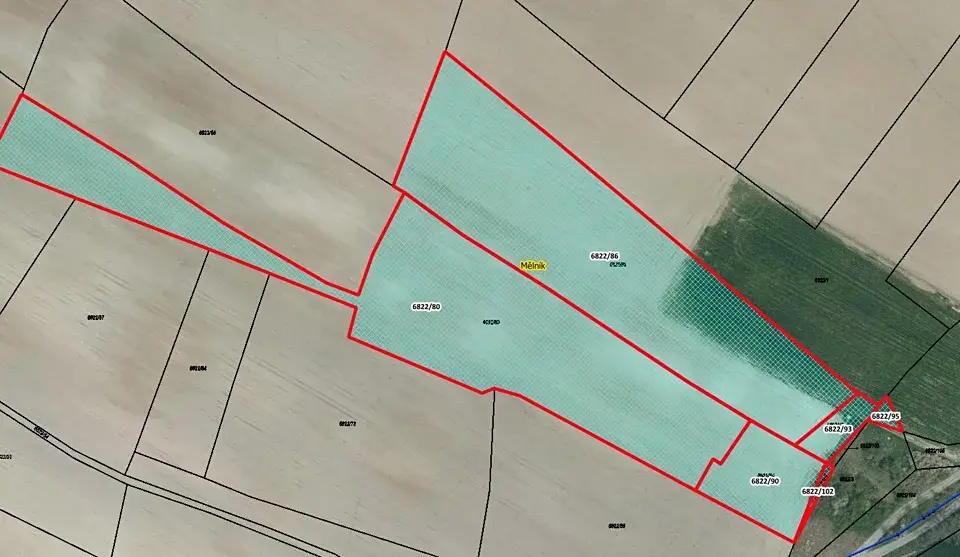 Nabízíme k prodeji soubor pozemků p.č. 6822/102, 6822/80, 6822/86, 6822/90, 6822/93 a 6822/95 o celkové výměře 22 731 m2 v k.ú. Mělník, vedené na LV 10956. Pozemky jsou řádně obhospodařovány místním zemědělcem. Pozemky jsou tedy vhodné k vlastnímu hospodaření, popřípadě směnu se státním pozemkovým úřadem (SPÚ).