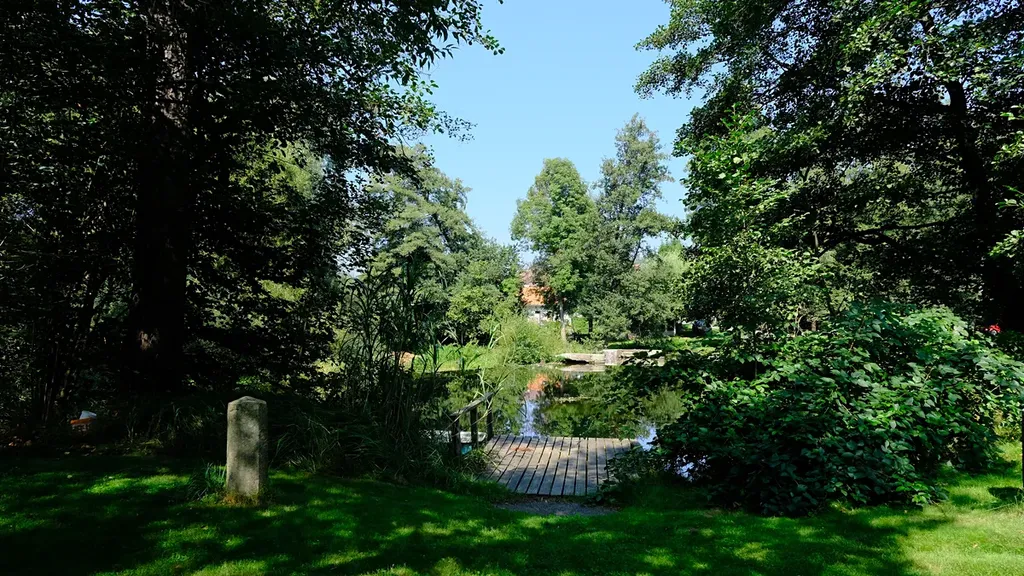 Okrasná zahrada, dřeviny, keře a travní plochy v okolí mlýna jsou pravidelně udržované a reprezentativní. Dřevěné molo k řece (romantický pohled na jez a řeku), k dispozici loďka "pramice".