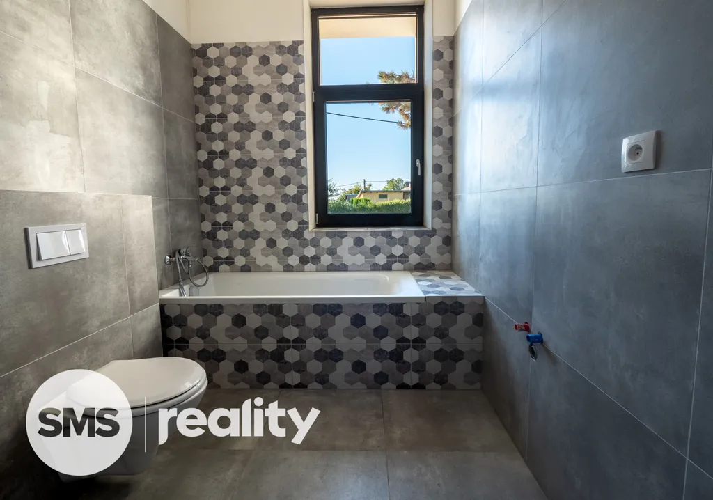 V bytě už na Vás čeká moderní kuchyňská linka v bílé barvě, (v době focení nebyla ještě zhotovena), vybavená všemi potřebnými spotřebiči – elektrickou troubou, varnou deskou a digestoří. Koupelna je elegantně řešena s použitím moderních obkladů a vybavena buď prostornou vanou, nebo sprchovým koutem.