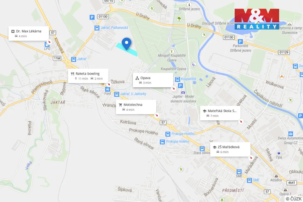 Dovolujeme si nabídnout k podeji pozemek v Opavě-Jaktaři, poblíž ulic Žižkova a Mahenova, o celkové ploše 9449 m², který je dle platného územního plánu města určen z 2/3 k výstavbě rodinných domů. Pozemek je rovinatý a mimo záplavová území. Přímo na parcele se nachází sloup elektrického vedení, odkud je napojena sousední zahrádkářská osada, vodovodní a kanalizační řad je v dosahu. Pro lokalitu je již také zpracovaná územní studie, dostupná na webu města Opavy - na pozemku by mohlo stát několik rodinných domů.