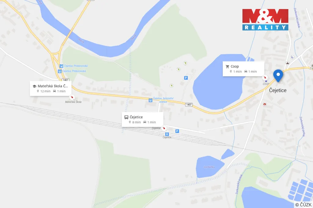 Lokalita Čejetic je naprosto ideální pro každodenní dojíždění. Do Strakonic dorazíte za necelých 10 minut a Písek máte v pohodlném dosahu 15 minut jízdy autem. Pokud dáváte přednost hromadné dopravě, přímo v obci se nachází vlaková zastávka, což zajišťuje perfektní spojení bez nutnosti startovat auto. Praktičnost bydlení podtrhuje i bezprostřední blízkost místního obchodu pro každodenní nákupy. V obci se nachází i mateřská škola.
