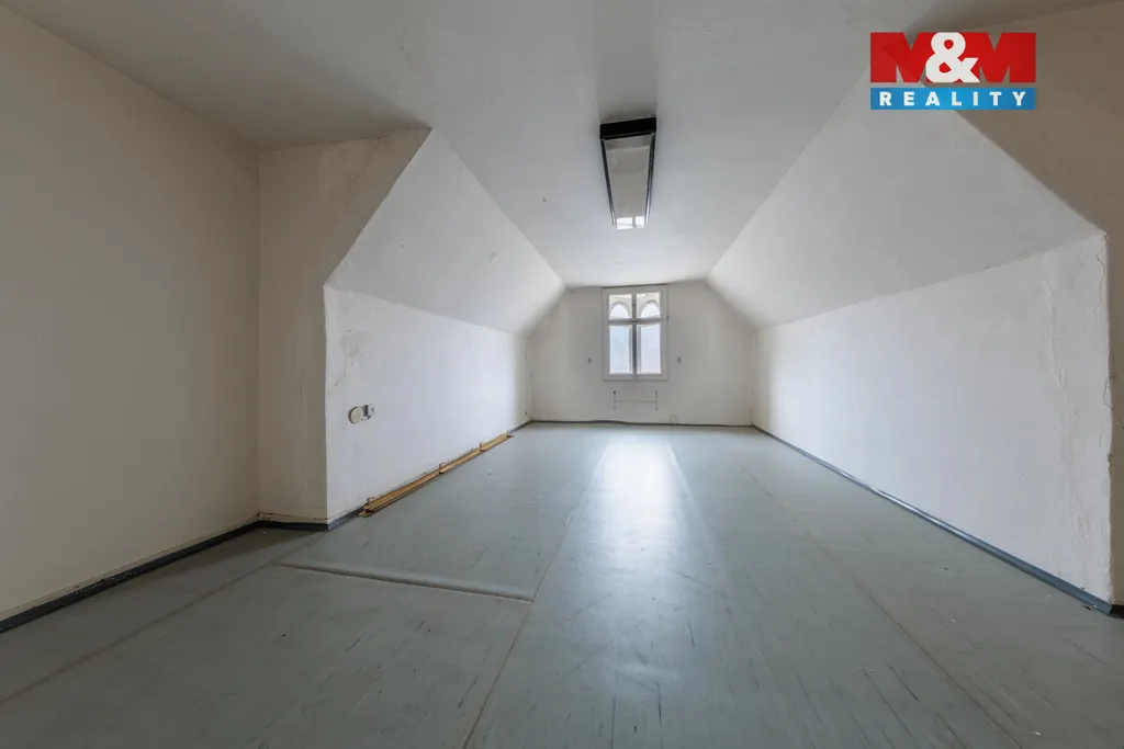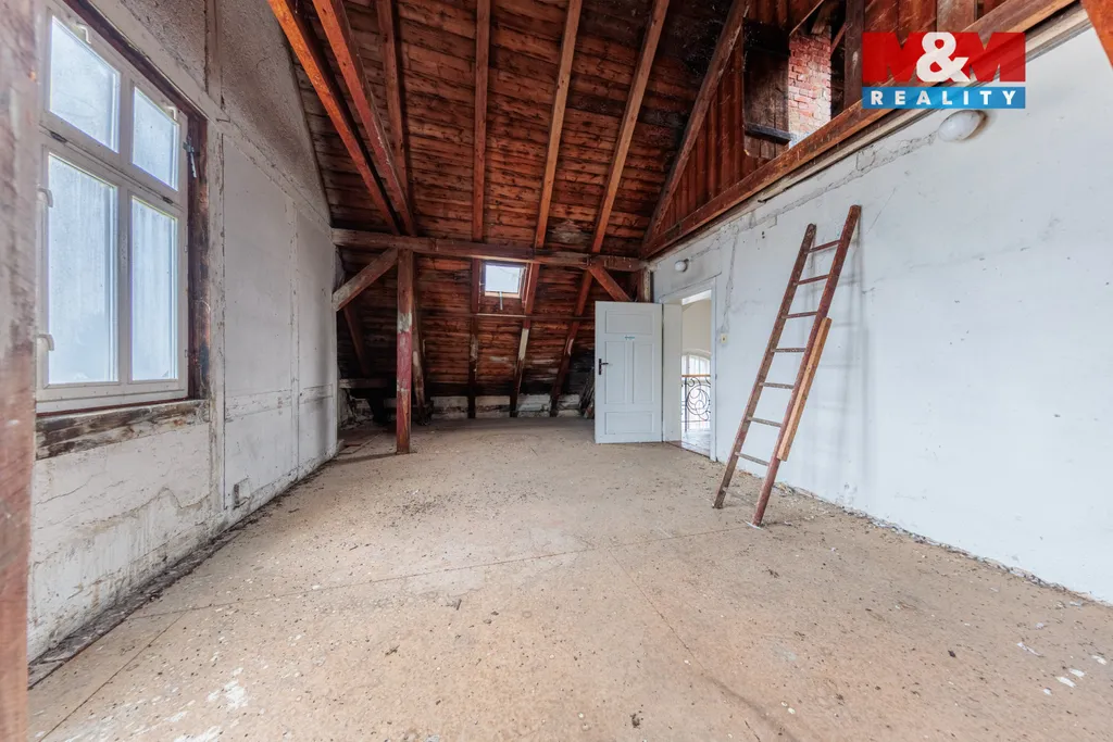 Dům je kompletně podsklepený a jeho interiéru dominuje velké centrální schodiště. V přízemí se nachází 4 velké místnosti, jedna menší a prostor se sprchou a WC. V patře jsou další 4 prostorné místnosti, koupelna a samostatné WC. Podkroví nabízí dvě místnosti a půdu s možností další vestavby.