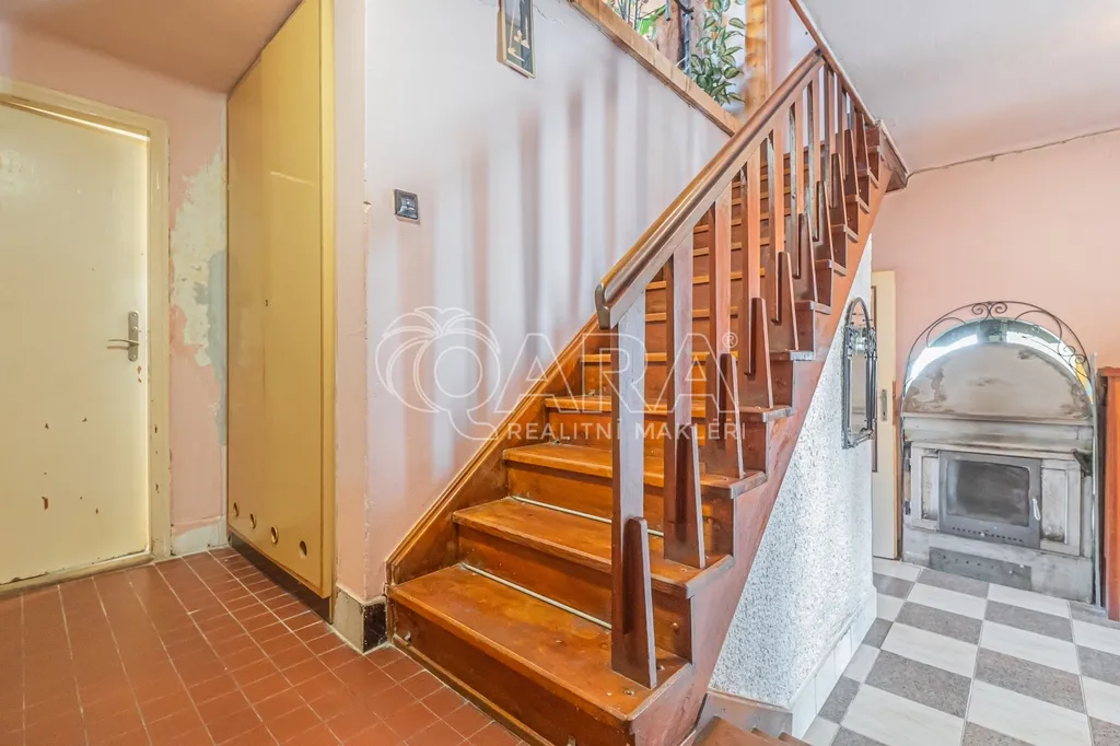 Klidová část domu v přízemí je oddělena dvěma schůdky v hlavní chodbě. Nachází se zde samostatné WC a dvě ložnice se samostatnými vstupy, které jsou však pro větší variabilitu i vzájemně průchozí. Naproti toaletě najdete koupelnu s vanou a vedle ní původní vestavnou skříň poskytující dostatek úložného prostoru.