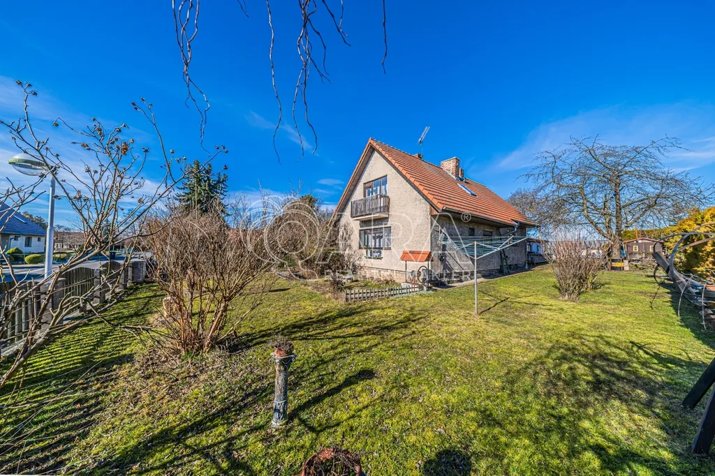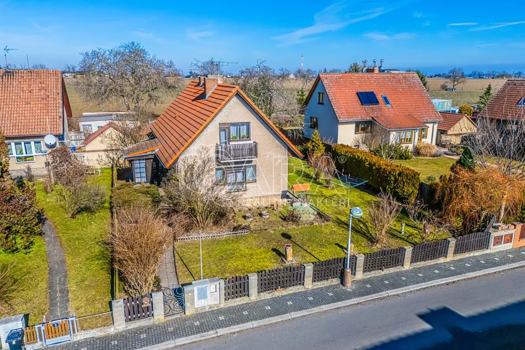 Venkovní zázemí domu doplňují funkční kolny, garáž a zastřešené prostory za domem, které lze nadále využívat nebo je odstranit a otevřít tak zahradu pro další využití podle vlastních představ.