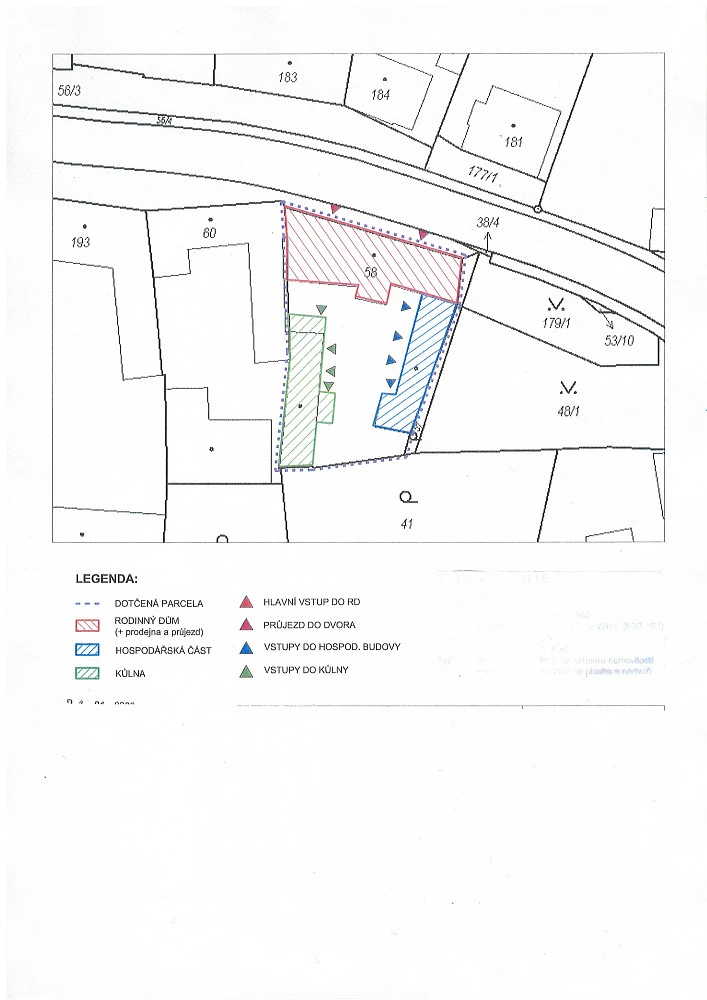 Velmi dobře přístupný RD, byl v dřívějších dobách využíván na bydlení, ale také k podnikání (výroba a prodejna masa a uzenin) s velkými garážovacími a skladovými prostorami (sklady, chlévy, udírna atd.) v klidné a přesto dobře dostupné ulici.
