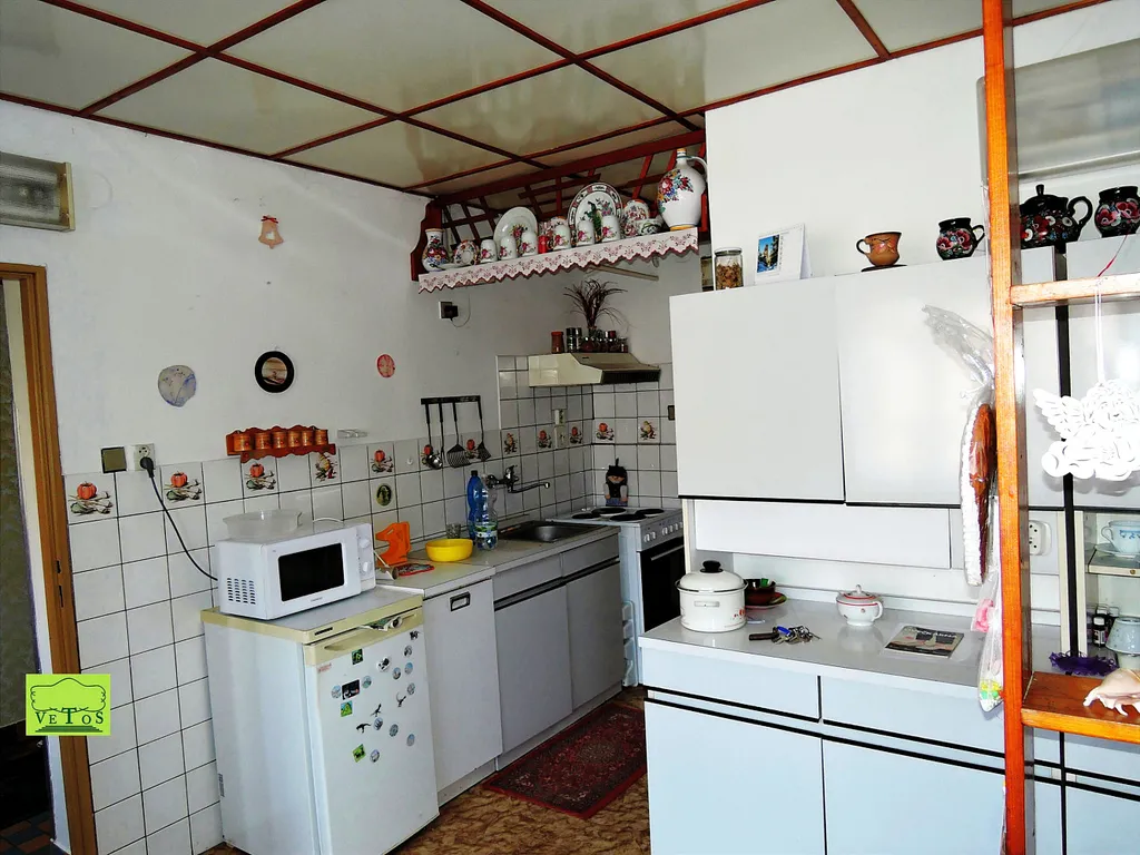 Hlavní budova - dům 5+1 je možno přebudovat i na více jednotek, (zastavěná plocha 215m², užitná plocha hlavní budovy 159m²), obsahuje kuchyni, 4 pokoje, pracovnu ( šicí místnost, popř. černá kuchyně - dříve využívaná jako prodejna), velkou koupelnu a WC zvlášť, s dalšími prostorami spíže, mrazícího boxu jakož i další prostory využitelné pro obytné či podnikatelské účely (půdy, sklad).
