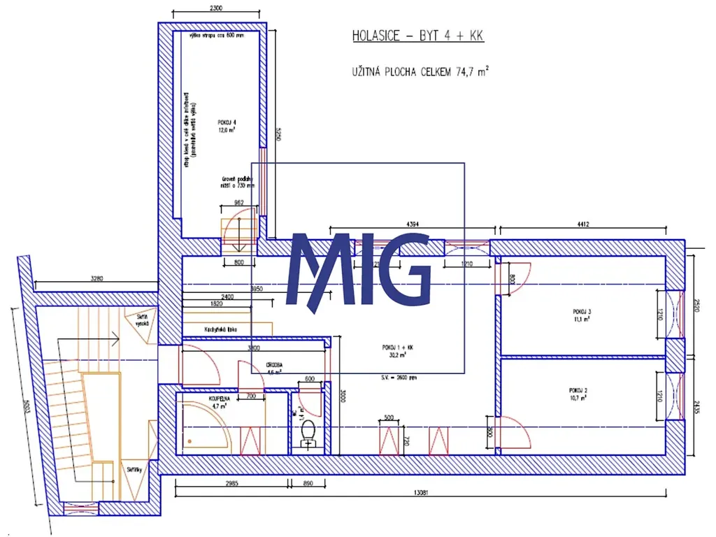 Nabízíme k pronájmu velmi příjemně řešený byt o dispozici 4+kk s plochou 74,6 m2 v Holasicích. Byt je umístěn ve druhém nadzemním podlaží ve dvoře mimo hlavní komunikaci.