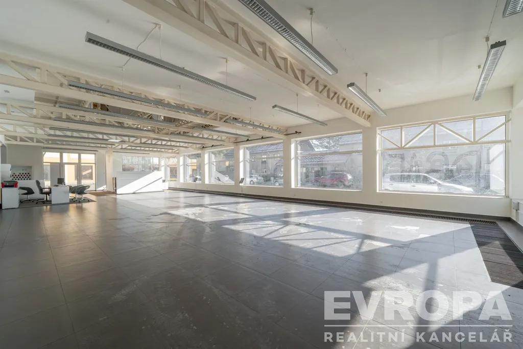 • Moderní prosklený showroom (236 m2) se zázemím, kancelářemi v patře a archivem. Ideální pro prodejnu, restauraci, klientské centrum nebo sídlo firmy.