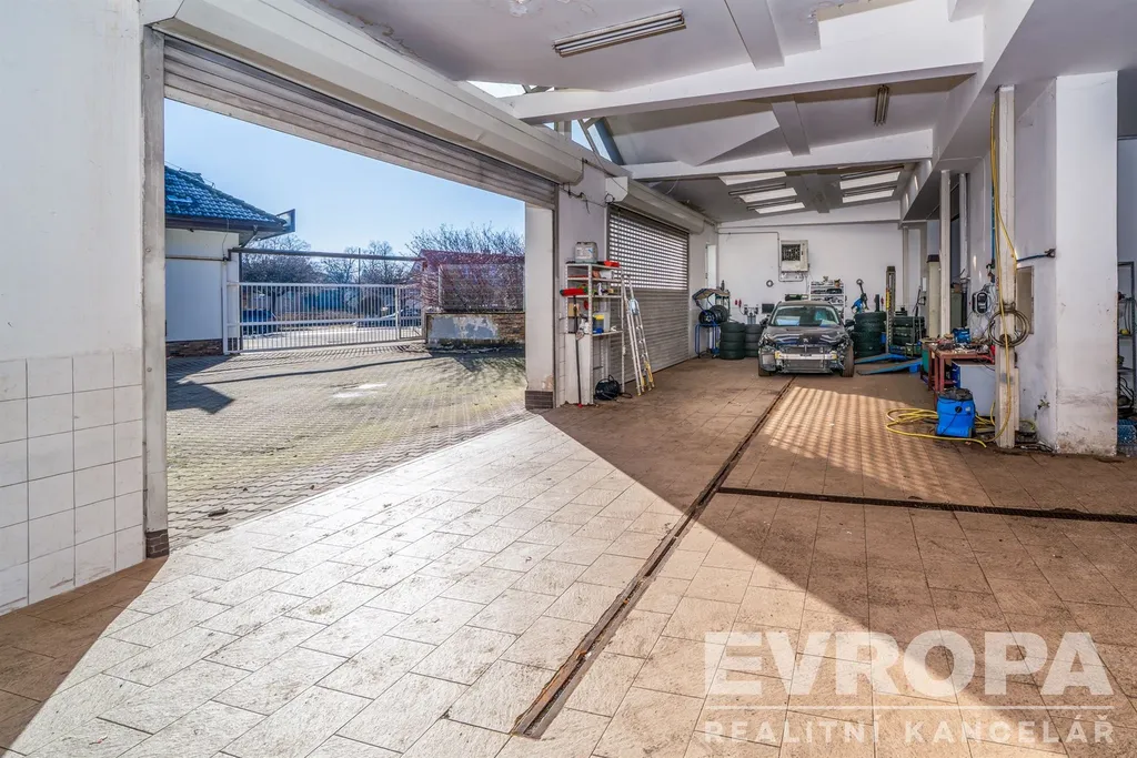 • Plně vybavené dílny (cca 555 m2) se 3 zvedáky, rozvody stlačeného vzduchu a sklady olejů i pneu. Vytápěno teplomety.
