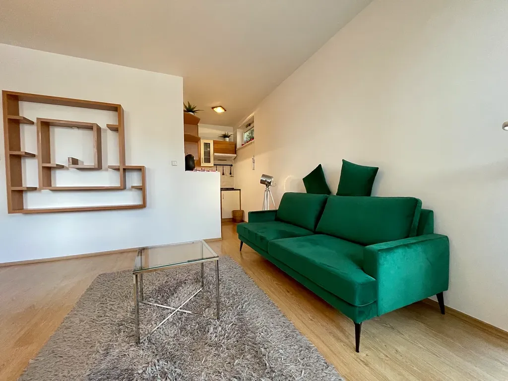 Ve 2. nadzemním podlaží menšího bytového domu s omezeným počtem jednotek se nachází prakticky řešený byt o dispozici 1+1, který kombinuje výhody městského bydlení s vlastním zeleným prostorem.