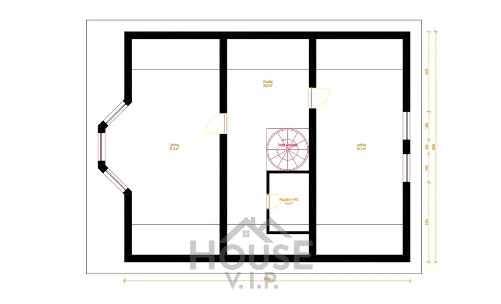 Dům zkolaudovaný v roce 1998 má podlahovou plochu 245 m², rozdělenou rovnoměrně mezi přízemí a první patro, a navíc neobytnou půdu o výměře cca 84 m². Přízemí tvoří vstupní hala, obytné prostory, kuchyň, koupelna a toaleta. V patře se nachází dvě ateliérové jednotky, hala, koupelna a toaleta.