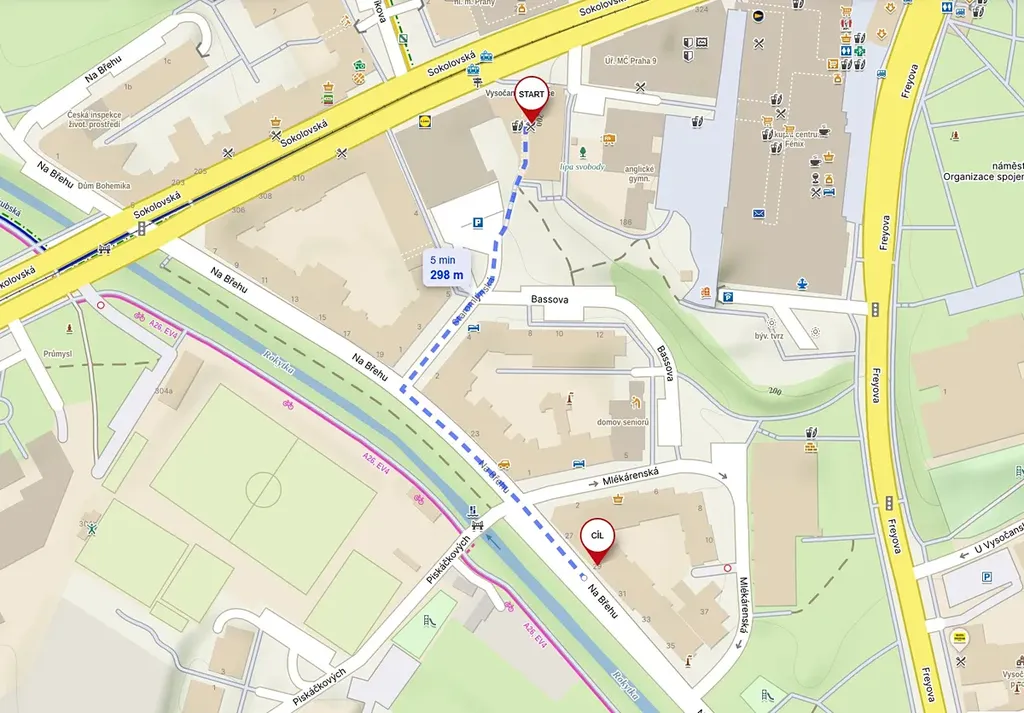 Nabízíme pronájem bytu 1+kk (36,6m2) v suterénu činžovního domu u metra Vysočanská, v ulici Na břehu. Byt se sestává z obývacího pokoje s kuchyňským koutem (29,7m2), koupelny s WC (3,5m2) a předsíně (3,5m2). Kuchyňská linka je vybavena kombinovaným sporákem, digestoří a pračkou. V koupelně je k dispozici sprchový kout. Byt je nově vymalován. Vytápění a ohřev TUV je řešen vlastním plynovým kotlem. Měsíční poplatky činí 1.370,-Kč/měs./osobu (zahrnují vodné, stočné, spol. elektřinu, odvoz odpadů, úklid a správu domu), elektřina 800,-Kč/měs., plyn 1.200,-Kč/měs. Vratná kauce (jistota) 18.000,-Kč, provize RK ve výši jednoho měsíčního nájmu + DPH; při podpisu nájemní smlouvy je nutné zaplatit celkem zhruba 57.000,-Kč. Jedná se o velmi dobře dostupnou lokalitu s veškerou občanskou vybaveností v dosahu. Stanice metra Vysočanská 300m, LIDL 300m, nákupní centrum Fenix 500m.