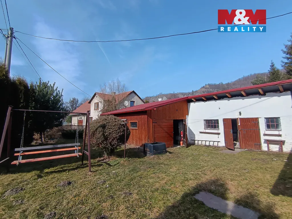 K domu také náleží poměrně rozlehlá rovinatá zahrada a posezení, ideální pro odpočinek i rodinné aktivity.