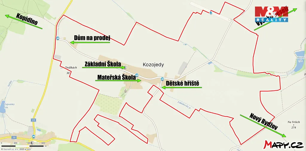 Nachází se na okraji obce Kozojedy, která je vybavena základní školou a mateřskou školou, což z něj činí ideální místo pro rodiny s dětmi.