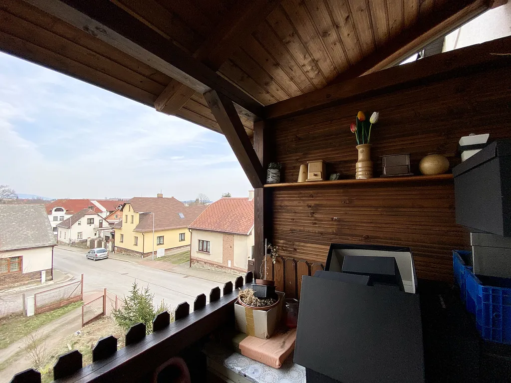 U domu dále nalezneme prostorný přístřešek na auto, kůlny jako skladovací prostory, několik parkovacích míst, soukromé předzahrádky k některým bytům, společný dvorek a posezení.