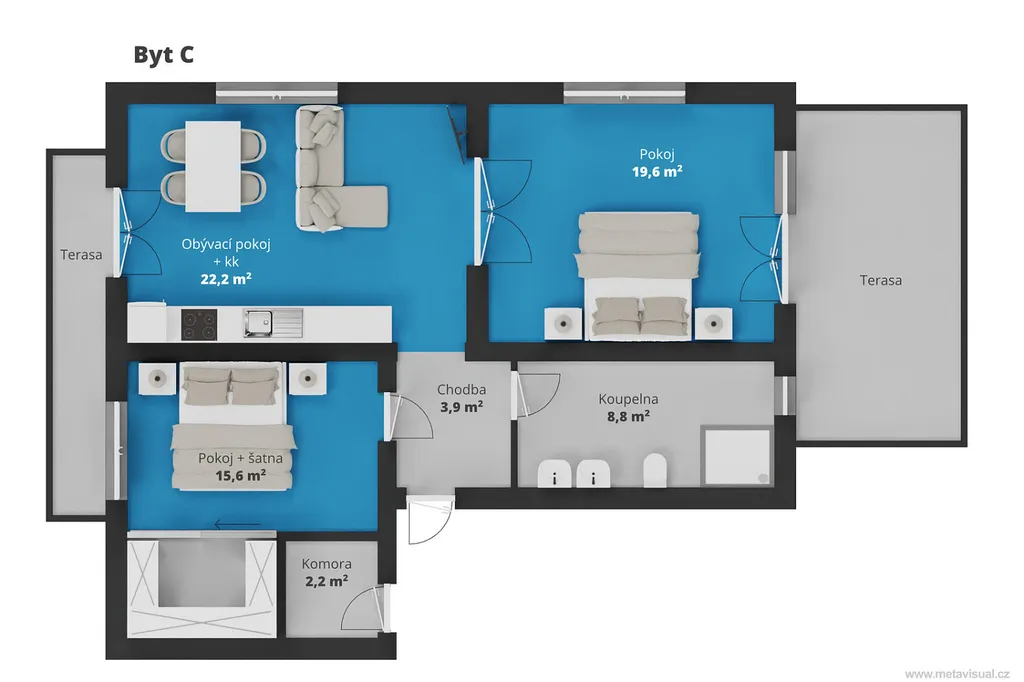 podlahová plocha 78 m² + 2 terasy