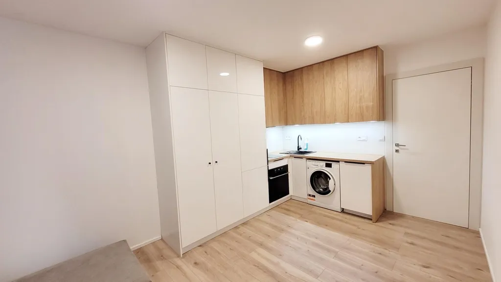 Exkluzivně nabízíme k pronájmu novostavbu bytu 1+KK o rozloze 22,88 m2, který je součástí novostavby and #34;Bytový dům Strančická and #34; v atraktivní a klidné lokalitě Praha 10 - Strašnice. Jedná se o novostavbu, která je umístěná do klidného vnitrobloku, kolaudace 2025. Výborné minimalistické pojetí s vysokým důrazem na praktičnost a pečlivě vybíranými moderními, kvalitními materiály včetně vybavení viz. fotografie. Byt je vybaven kuchyňskou linkou se spotřebiči (lednice, horkovzdušná trouba, varná deska, digestoř, myčka, pračka a dále vestavěnými skříněmi v předsíni, nábytkem na míru včetně manželského dvoulůžka. Stačí přinést matraci, osobní věci a můžete bydlet. Volné k nastěhování od 1.5.2026. Měsíční nájemné ve výši 13.500,- Kč + poplatky ve výši 3.250,- Kč (vodné, stočné, topení, odvoz odpadu, úklid společných prostor a také elektřina společných prostor a zdroj TV signálu) + převod elektroměru (záloha 1.000,-Kč) + internet (k dispozici Vodafone s až 1 GBit). Kauce ve výši dvojnásobku nájemného, provize ve výši jednoho nájmu + 21% DPH. Jedná se o ateliér a není tak možné zřízení trvalého pobytu. Veškerá občanská vybavenost v blízkém okolí, dopravní obslužnost zajištěna četnými tramvajovými, autobusovými popř. vlakovými spoji. Více informací na vyžádání v RK.