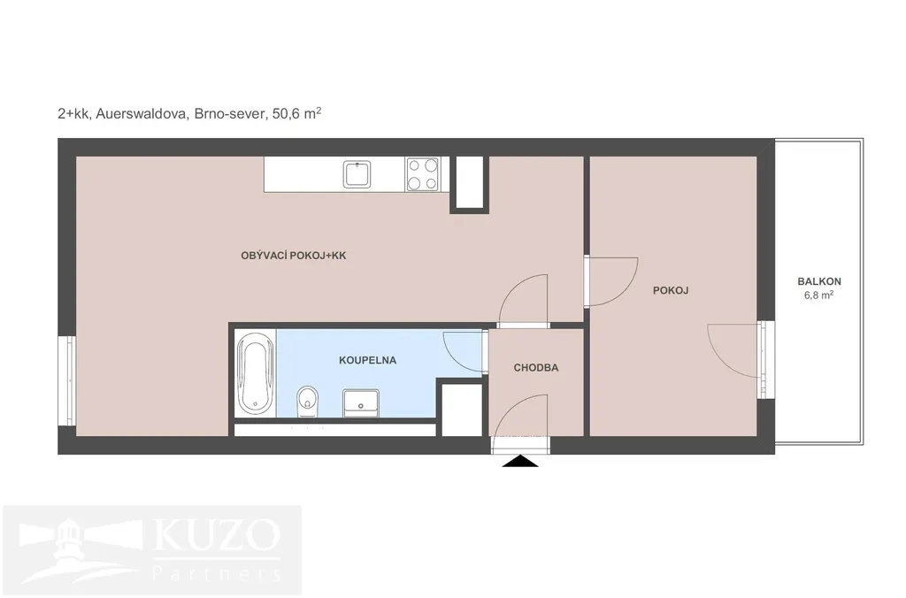 Pronájem bytu 2+kk, Brno, Auerswaldova, 51 m2 (ID: 2097983)
