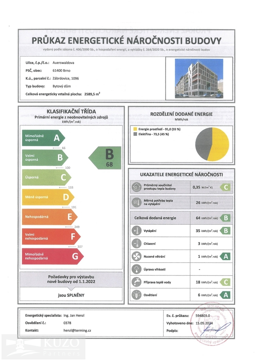 Nízké provozní náklady zajišťuje PENB třídy B.