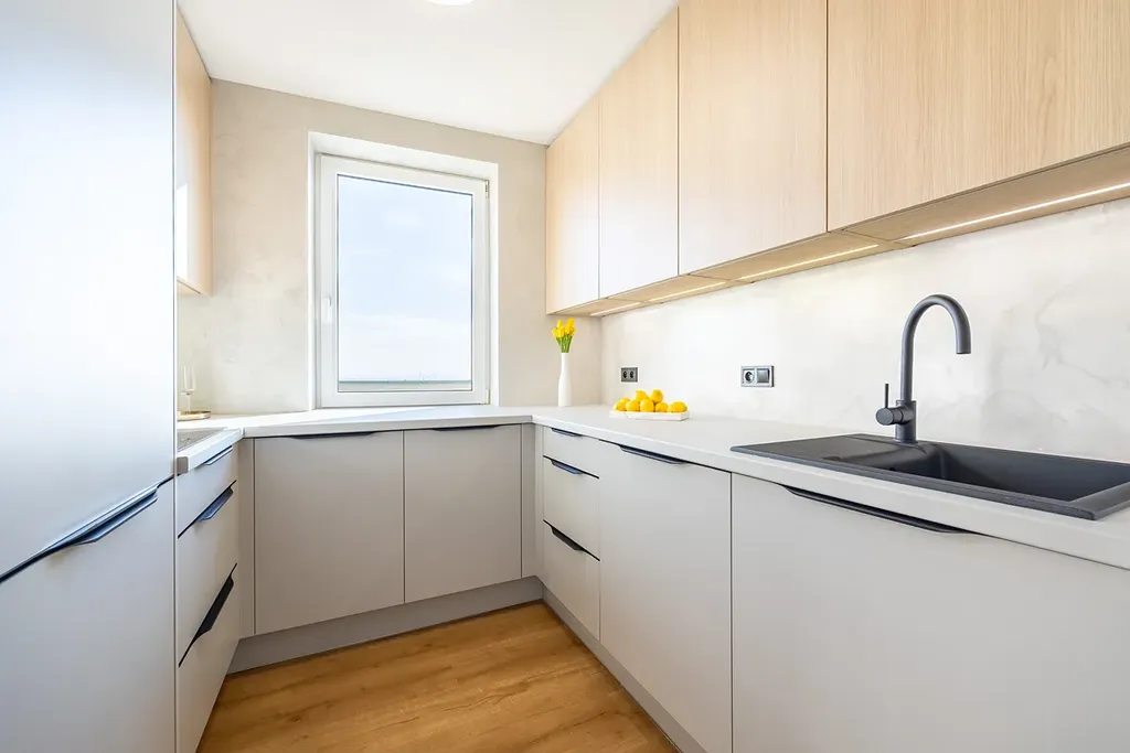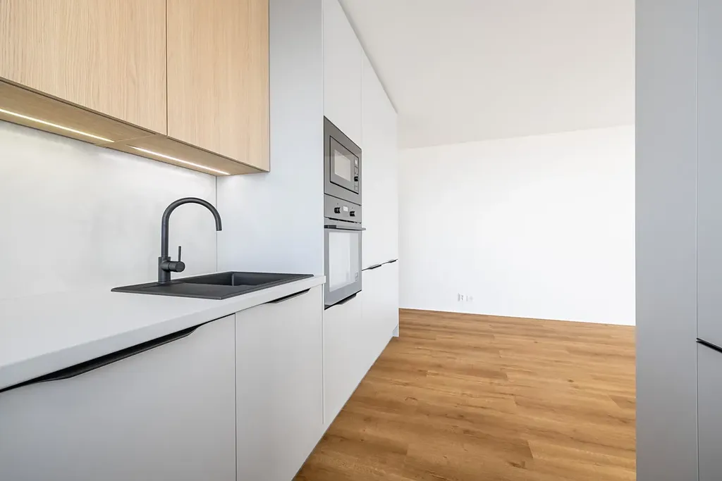 - nová kuchyňská linka vyrobena na míru se spotřebiči (značková elektrická trouba, myčka, indukční deska, digestoř, osvětlení, dřez)