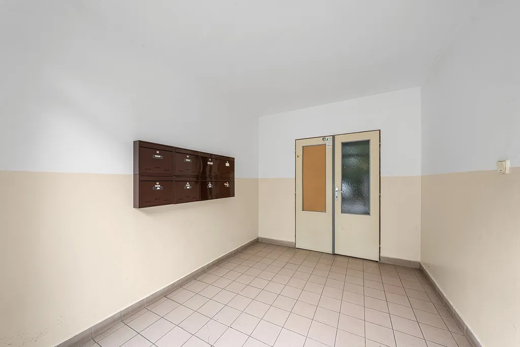 Tato velkorysá bytová jednotka se nachází ve třetím nadzemním podlaží nižšího bytového domu bez výtahu, kdy jsou na jednom patře pouze dvě bytové jednotky a skladové komory, jenž k nim přináleží.