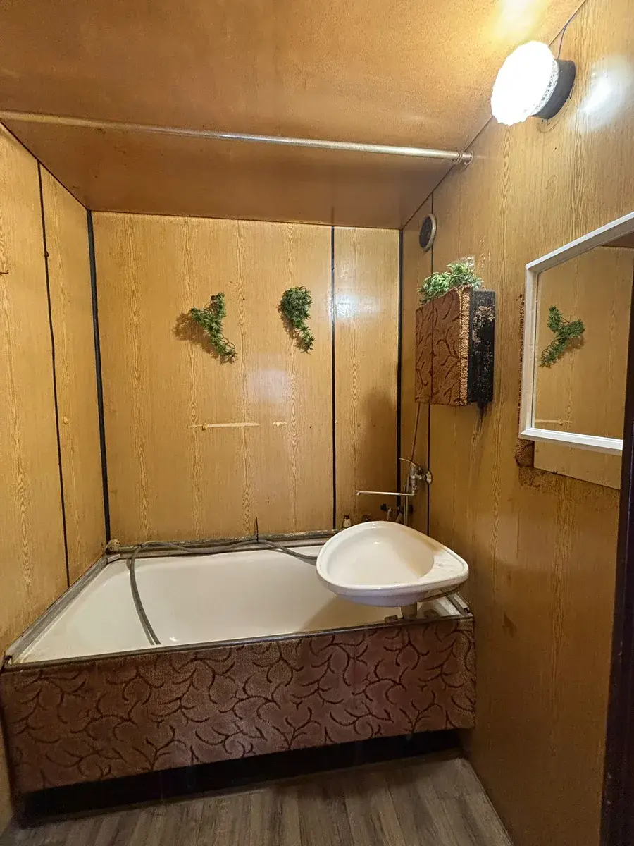 Vytápění je řešeno centrálně z domovní kotelny, ohřev vody zajišťuje vlastní el. boiler v bytě.