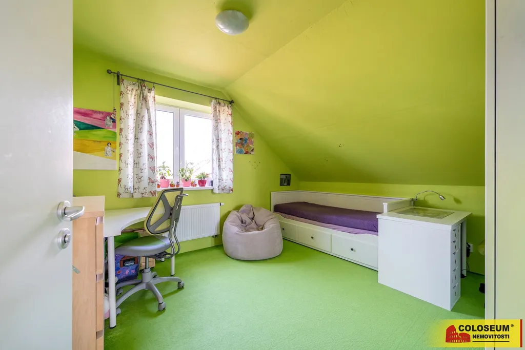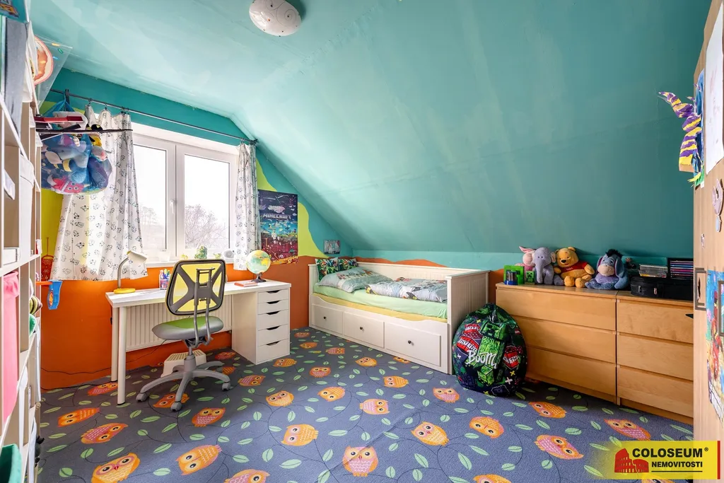Dispozice nabízí pět samostatných pokojů, které lze využít například pro až tři děti nebo jako kombinaci ložnice a pracovny, a dvě koupelny s WC. V přízemí se nachází koupelna se sprchovým koutem, v patře je druhá koupelna s vanou.