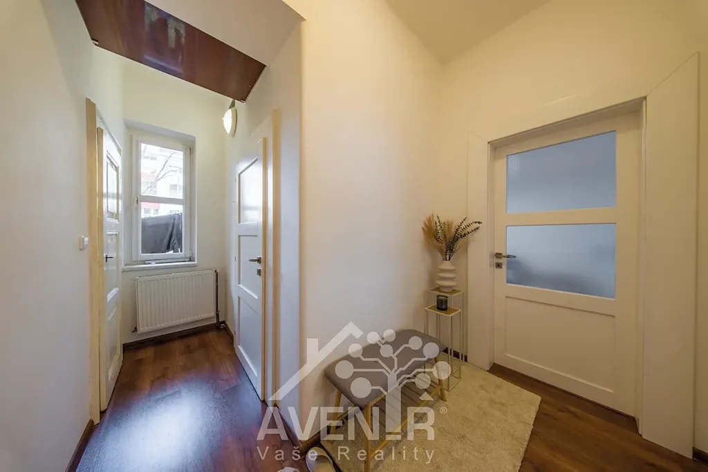 Samotný byt se nachází v přízemí čtyřpodlažního cihlového domu a působí velmi vzdušně a prostorně, což je dáno především vysokými stropy typickými pro starší cihlovou výstavbu. Nemovitost je ve velmi dobrém stavu a nevyžaduje nutnou rekonstrukci, takže může dobře posloužit jak pro vlastní bydlení, tak jako zajímavá investice k pronájmu.