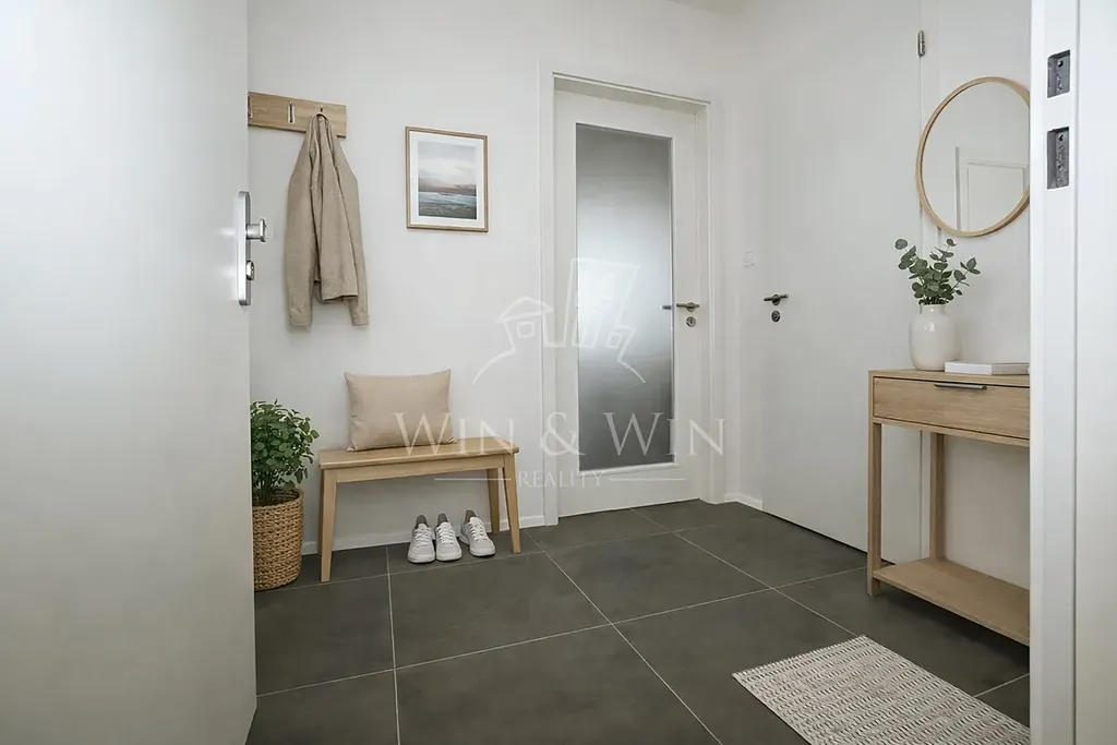 Bytová jednotka se nachází v 3. nadzemním podlaží a nabízí velmi příjemné a praktické dispoziční řešení. Velkým benefitem je velkorysá terasa o velikosti 13,2 m², ideální pro ranní kávu, večerní posezení nebo letní grilování.