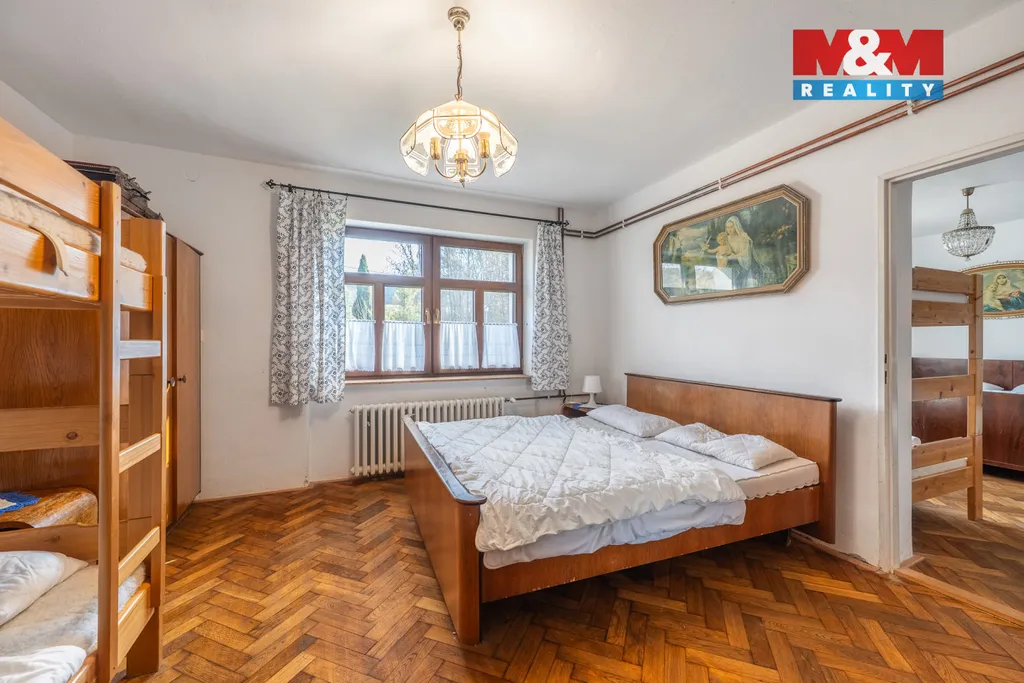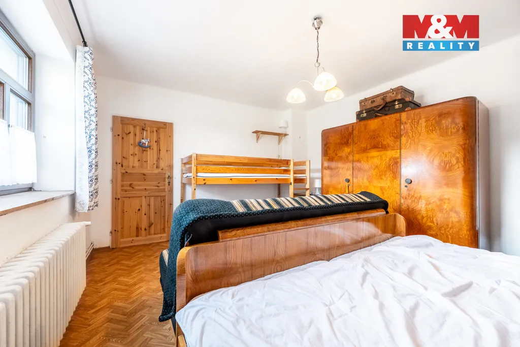 Chalupa prošla v posledních 10 letech postupnou rekonstrukcí – nová okna, zateplená fasáda, nová střecha, koupelna včetně odpadů, nový septik i rozvody ústředního topení s kotlem. Dispozice nabízí 3 ložnice a obývací pokoj s kapacitou až 14 lůžek, vybavenou kuchyň, jídelnu, koupelnu s WC a 1 samostatné WC. V patře je navíc prostor pro vybudování další samostatné jednotky. Nemovitost je využívána k rodinné rekreaci i krátkodobým pronájmům, což nabízí zajímavou investiční příležitost. K dispozici je obecní vodovod i vlastní studna, elektrické vytápění a rozlehlý pozemek s ovocnými stromy, posezením a kůlnou. Parkování pro více aut na vlastním pozemku. Velkou výhodou je klidná poloha s výhledem do krajiny a zároveň blízkost obecního hřiště a biotopu ke koupání.