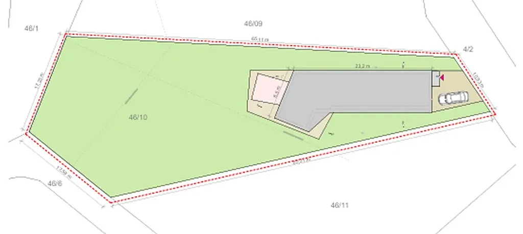 S koupí pozemku je možno převzít nedokončený projekt pro výstavbu rodiného domu, který lze ještě upravit dle vlastních představ.