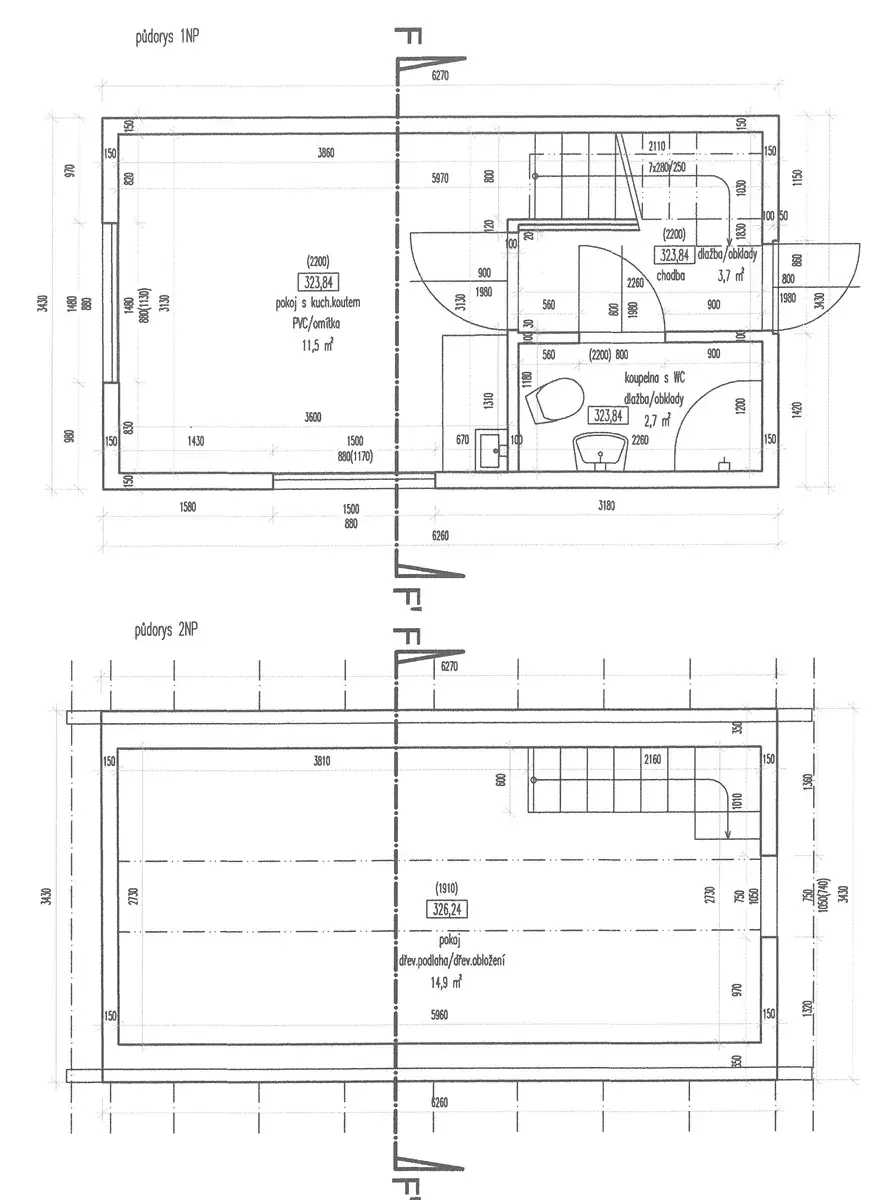 - přízemní místnost s kuchyňským koutem – 11,5 m²