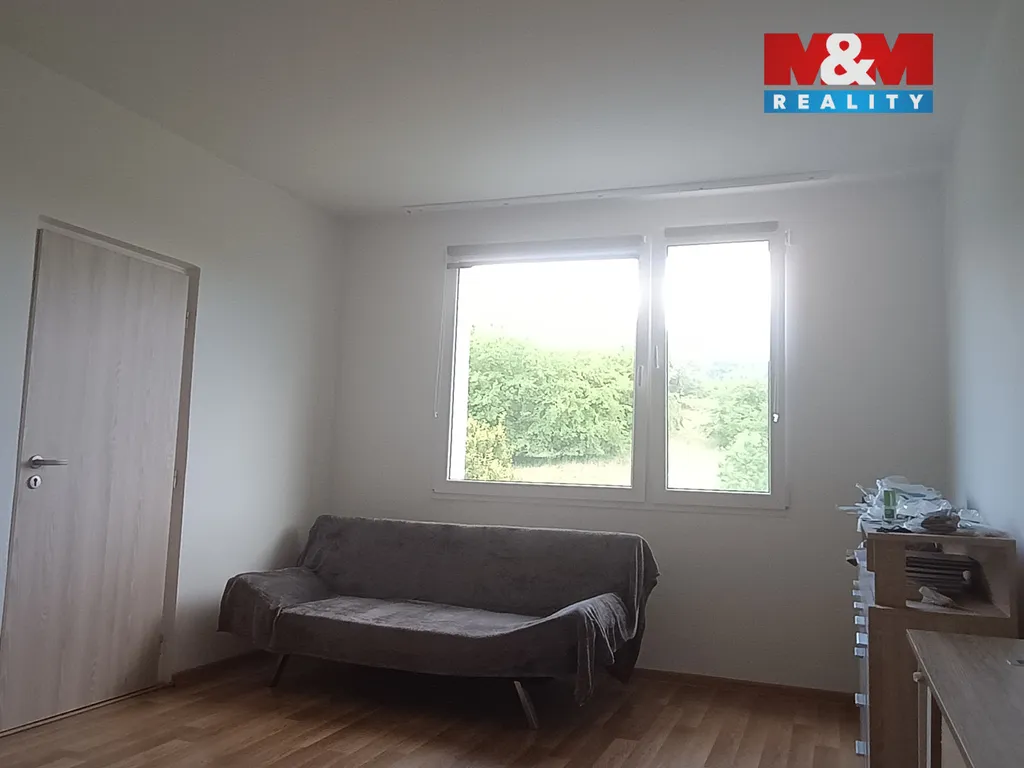 Prostorný obývací pokoj s balkónem a hezkým výhledem, ložnice, kuchyň s místem na jídelní stůl, koupelna, šatna a sklep