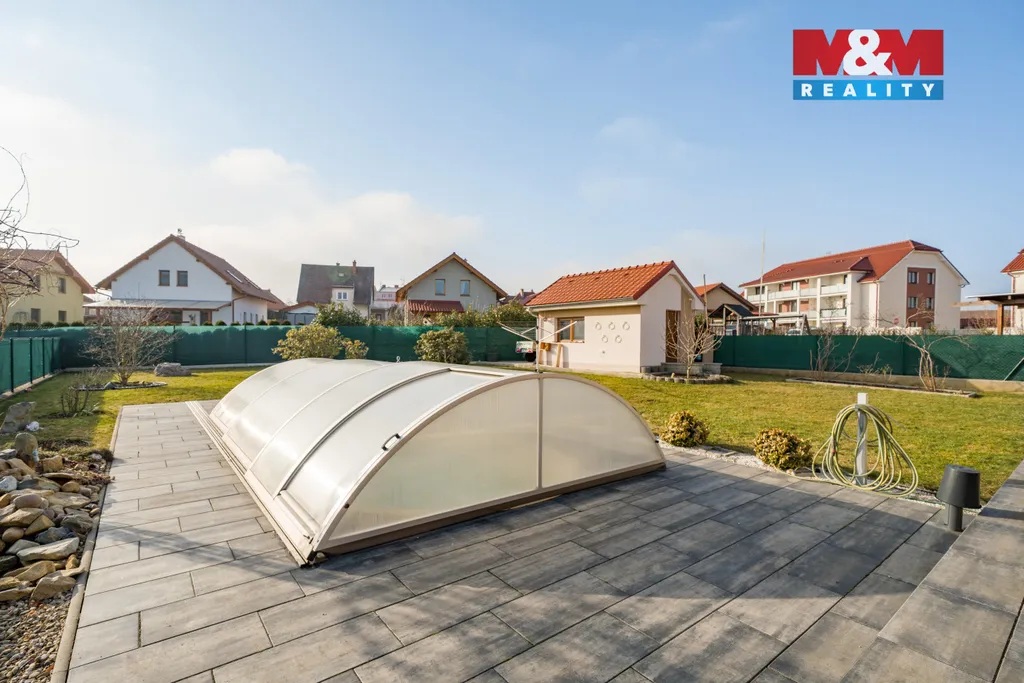 Nabízíme k prodeji nadstandardní rodinný dům z roku 2020, který vyniká promyšlenou dispozicí a kompletně bezbariérovým řešením. Nemovitost o celkové užitné ploše 174 m² poskytuje komfortní zázemí pro ty, kteří hledají klidné bydlení s výbornou dostupností. Srdcem domu je prostorný obývací pokoj propojený s kuchyní a přímým vstupem na terasu, která přirozeně navazuje na zahradu s bazénem. Praktická dispozice dále nabízí ložnici s vlastní šatnou, tři samostatné dětské pokoje, pracovnu, dvě koupelny a další šatnu. Součástí interiéru je rovněž technická místnost a garáž, které zajišťují veškerý provozní komfort. Dům je postaven s důrazem na kvalitu a bezbariérovost, což z něj činí ideální volbu pro vícegenerační bydlení či rodiny s dětmi. Exteriér tvoří udržovaná zahrada s bazénem, ideální pro relaxaci i rodinné aktivity. Strategické umístění obce zajišťuje vynikající dopravní dostupnost na dálnici D8 (Praha – Drážďany) při zachování klidu venkovského prostředí. Těšíme se na prohlídku.