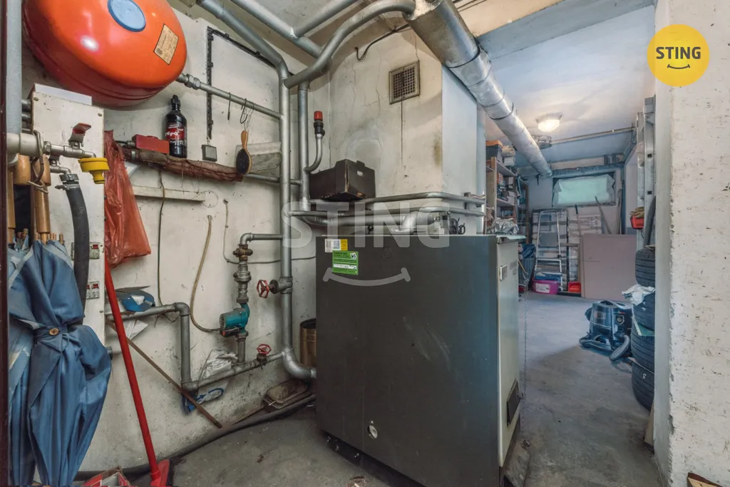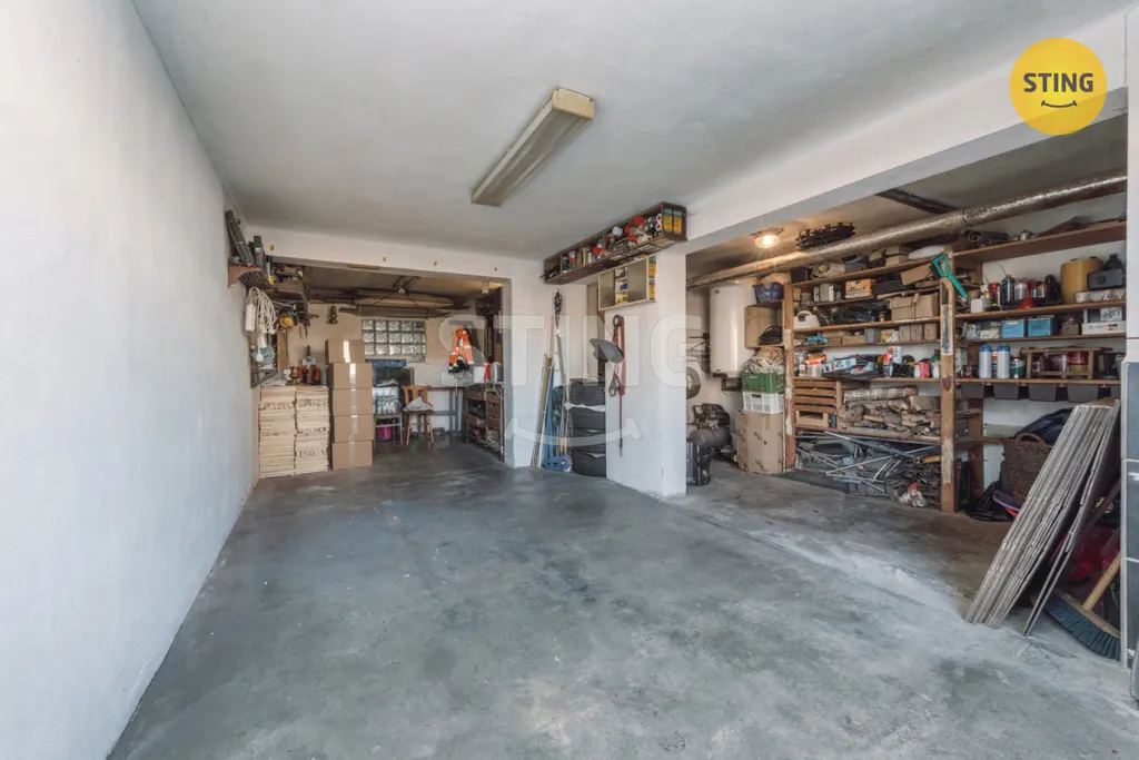Nabízený dům je kompletně podsklepený. Ve sklepních prostorách se nachází garáž, technické místnosti a kotelna.