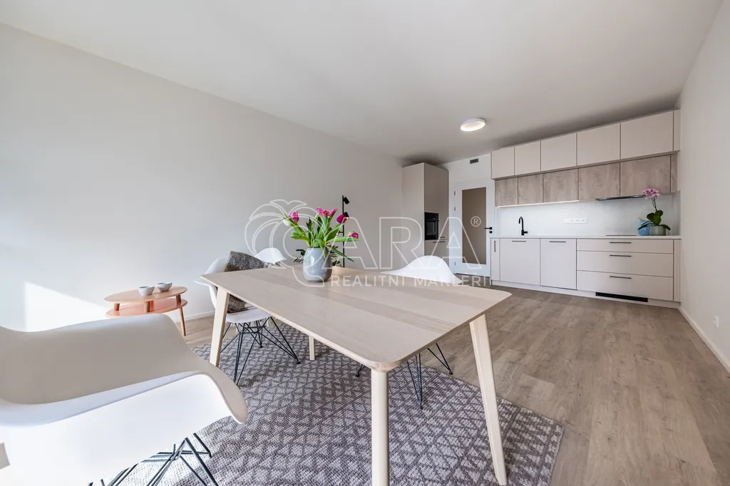 Byt s jižní orientací nabízí nespočet nadstandardních prvků: vinylové podlahy, velkoformátová dlažba, vytápění podlahovými konvektory, hliníková okna, systém řízeného větrání s rekuperací tepla, zabezpečovací systém Jablotron, kuchyňskou linku se spotřebiči na míru, magnetické zámky na dveřích, bezpečnostní dveře Next, energetický štítek “B”, zděnou sklepní kóji o rozměru 8,1 m2..