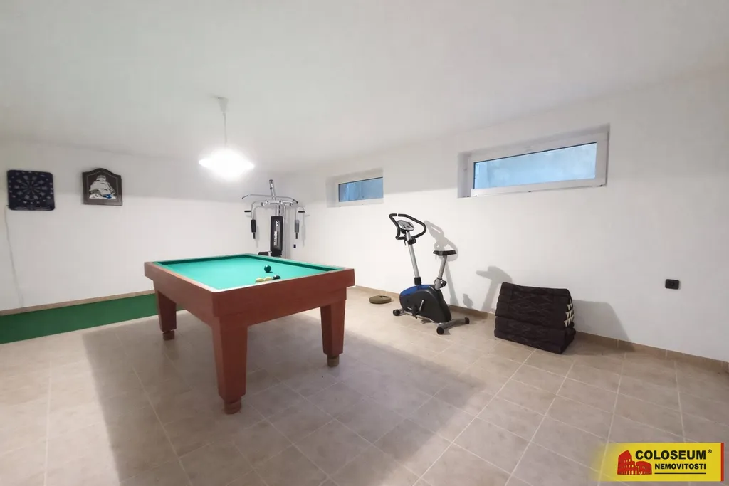 V přízemí domu se nachází prostorná obývací hala, kuchyně, ložnice a toaleta se samostatnou koupelnou. Suterén je prakticky využit jako dílenské prostory, kotelna, skladové prostory a tělocvična. V patře domu je k dispozici dalších pět ložnic, pracovna a sociální zázemí, což nabízí dostatek prostoru pro větší rodinu i kombinaci bydlení s prací z domova.